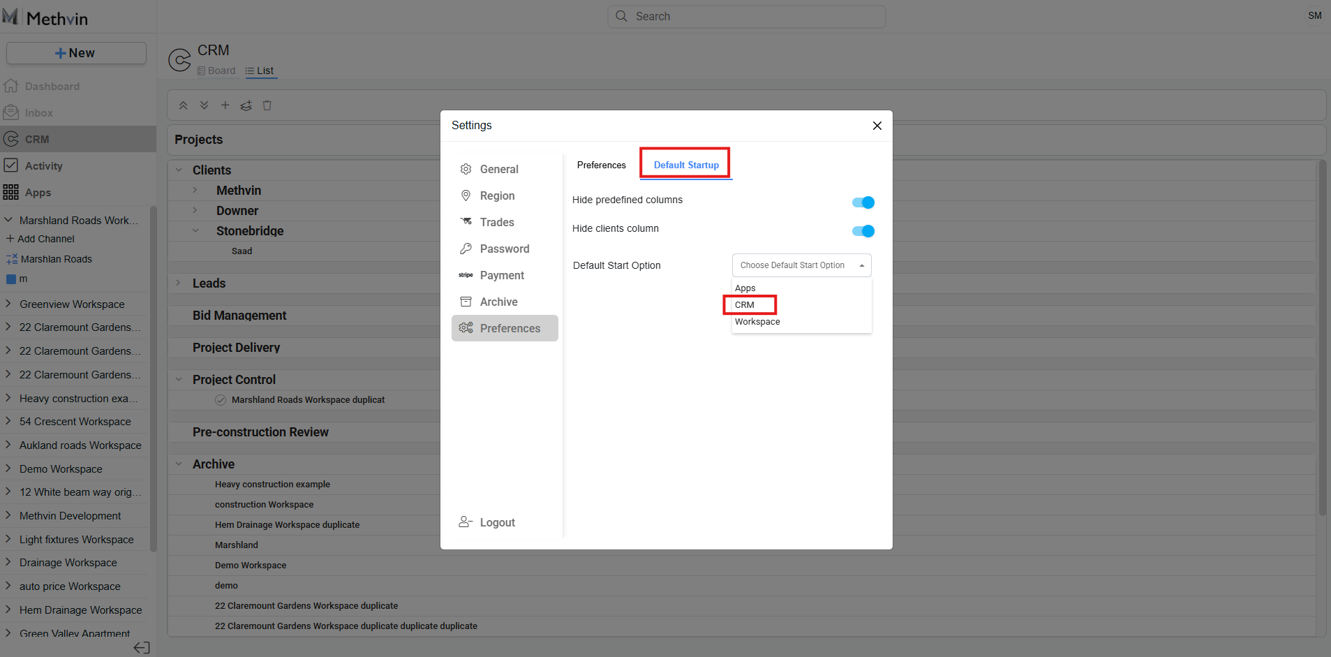 - Workspace — you’ll be asked to select which workspace to load and the default view out of the following: