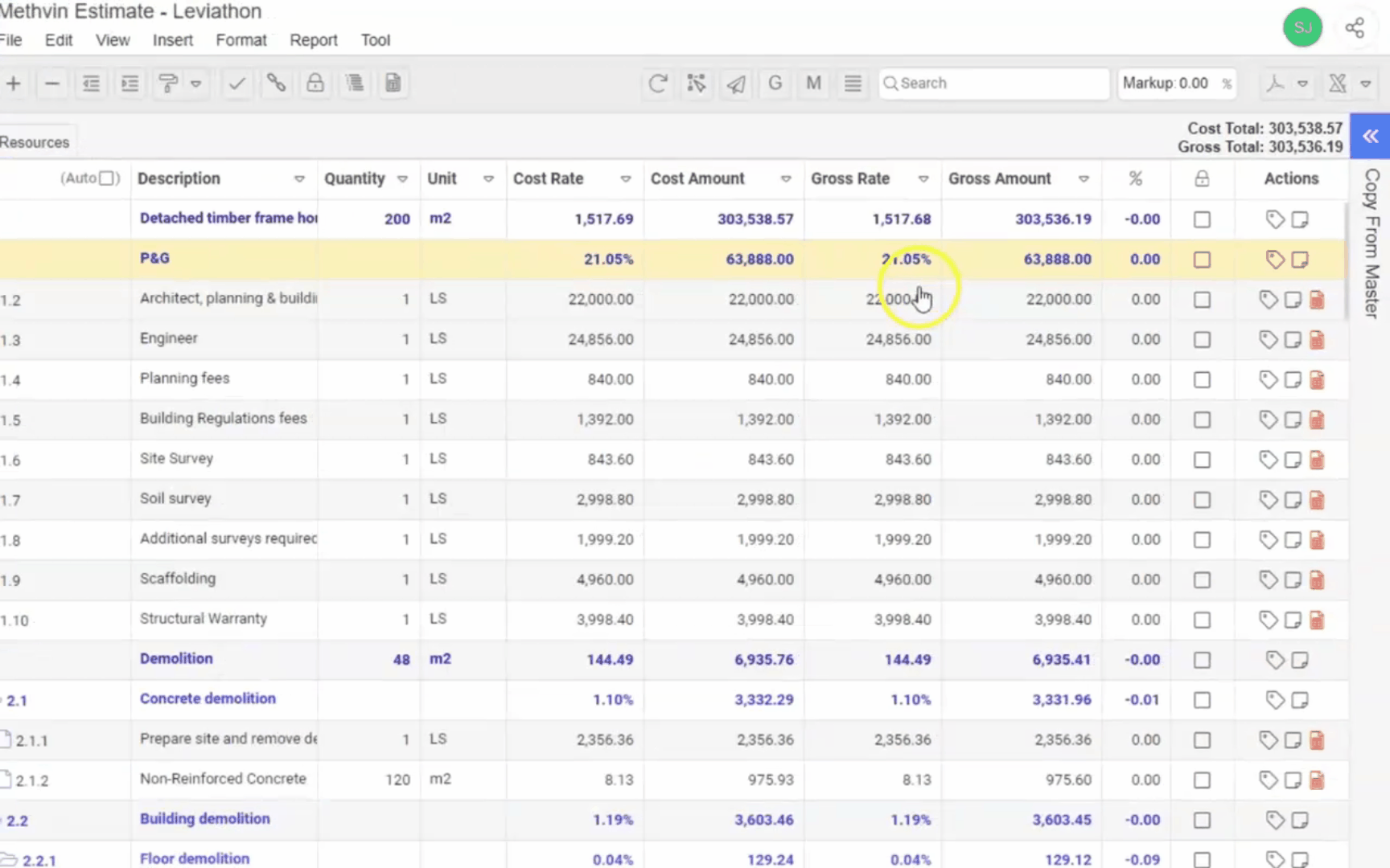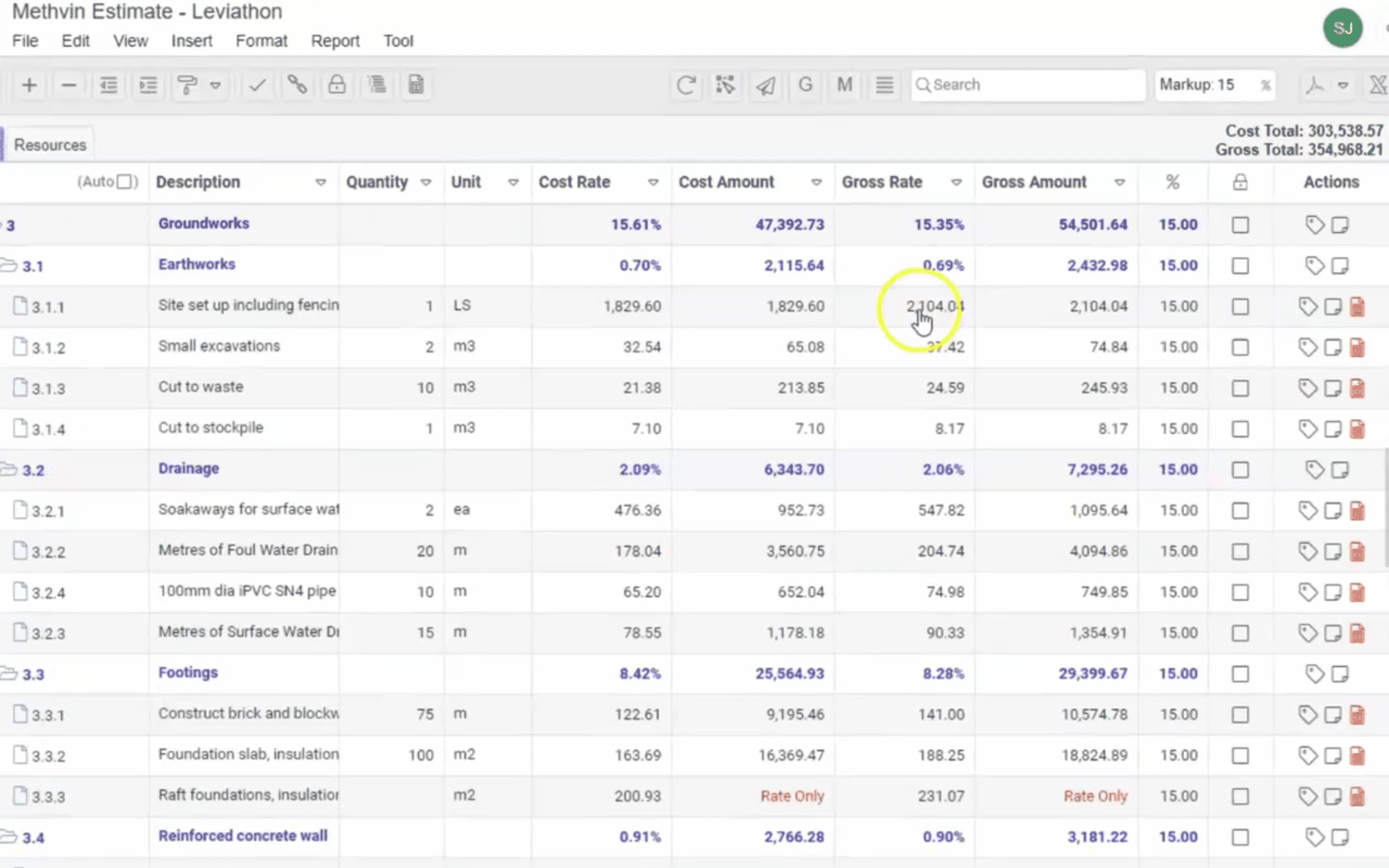 In any estimation process, accurately applying markup is crucial to ensuring profitability and covering overhead costs. Methvin provides flexible options for setting markup, allowing you to apply a general markup across the entire project or customize markup percentages for individual items.