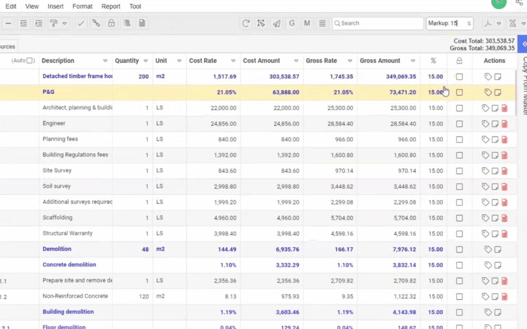 - You can edit the Gross Rate, Gross Amount and Markup percentage directly in these columns.