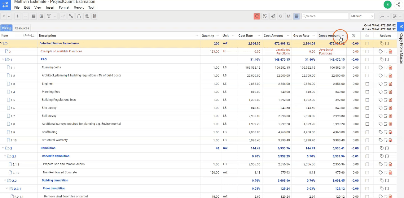 - Access the “Copy from Master” button on the right-hand side of the estimation table.