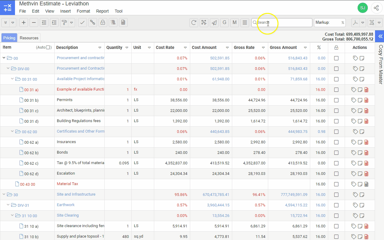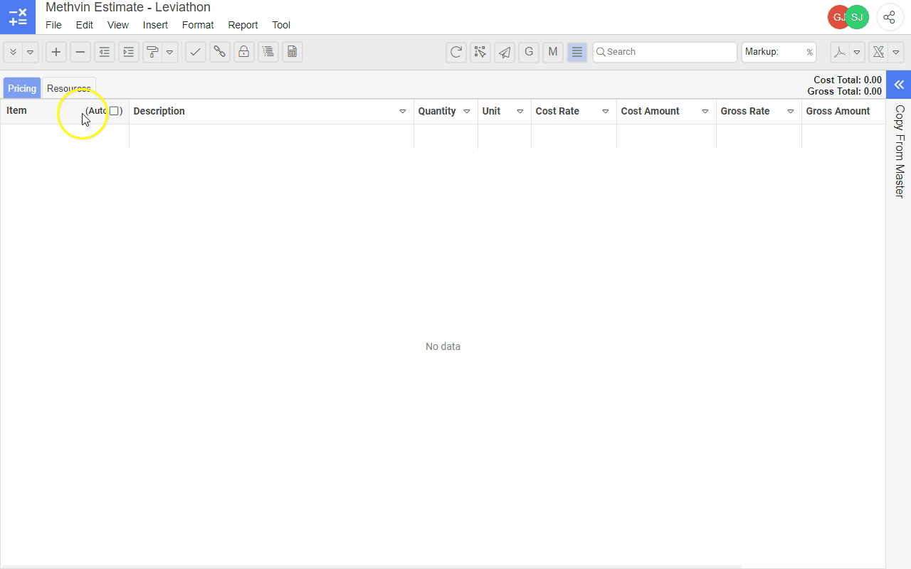 Import client Schedule of Quantities (SoQ), mapping tool (ctrl+c & ctrl+v)