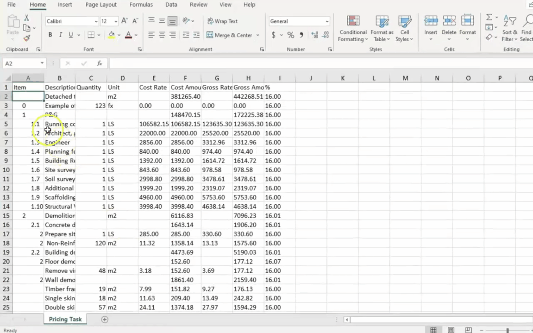 Quick example of estimating a Bill Item
