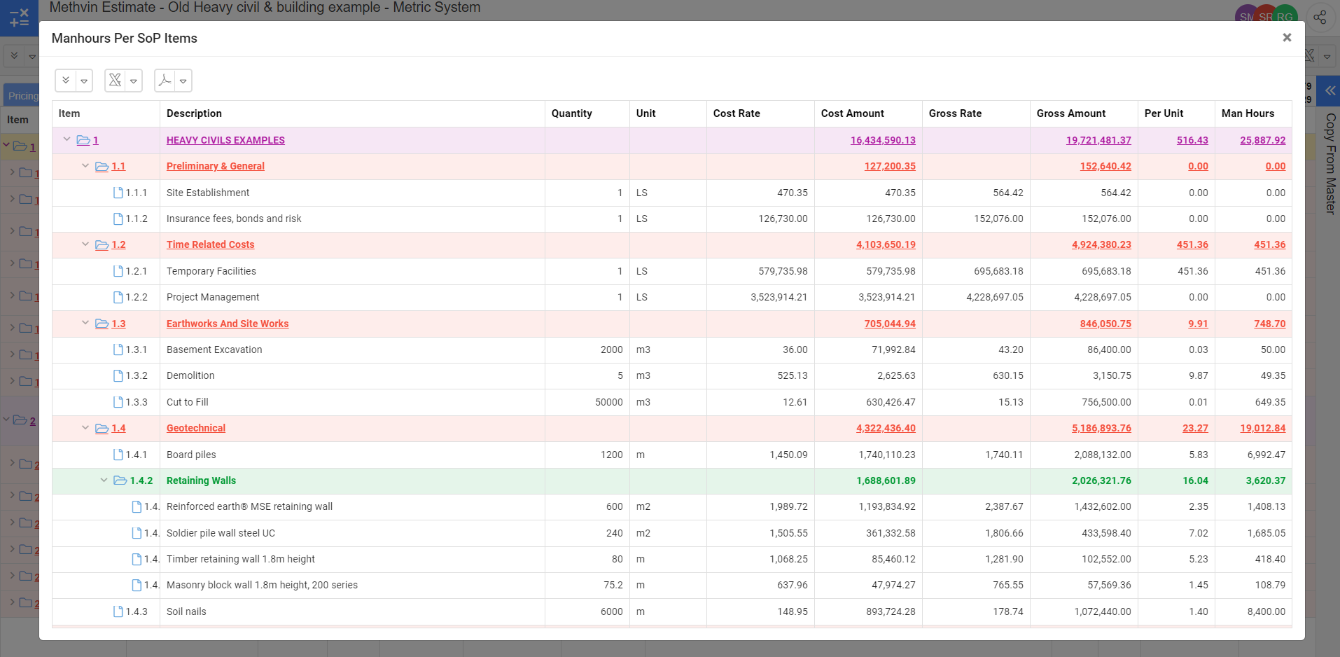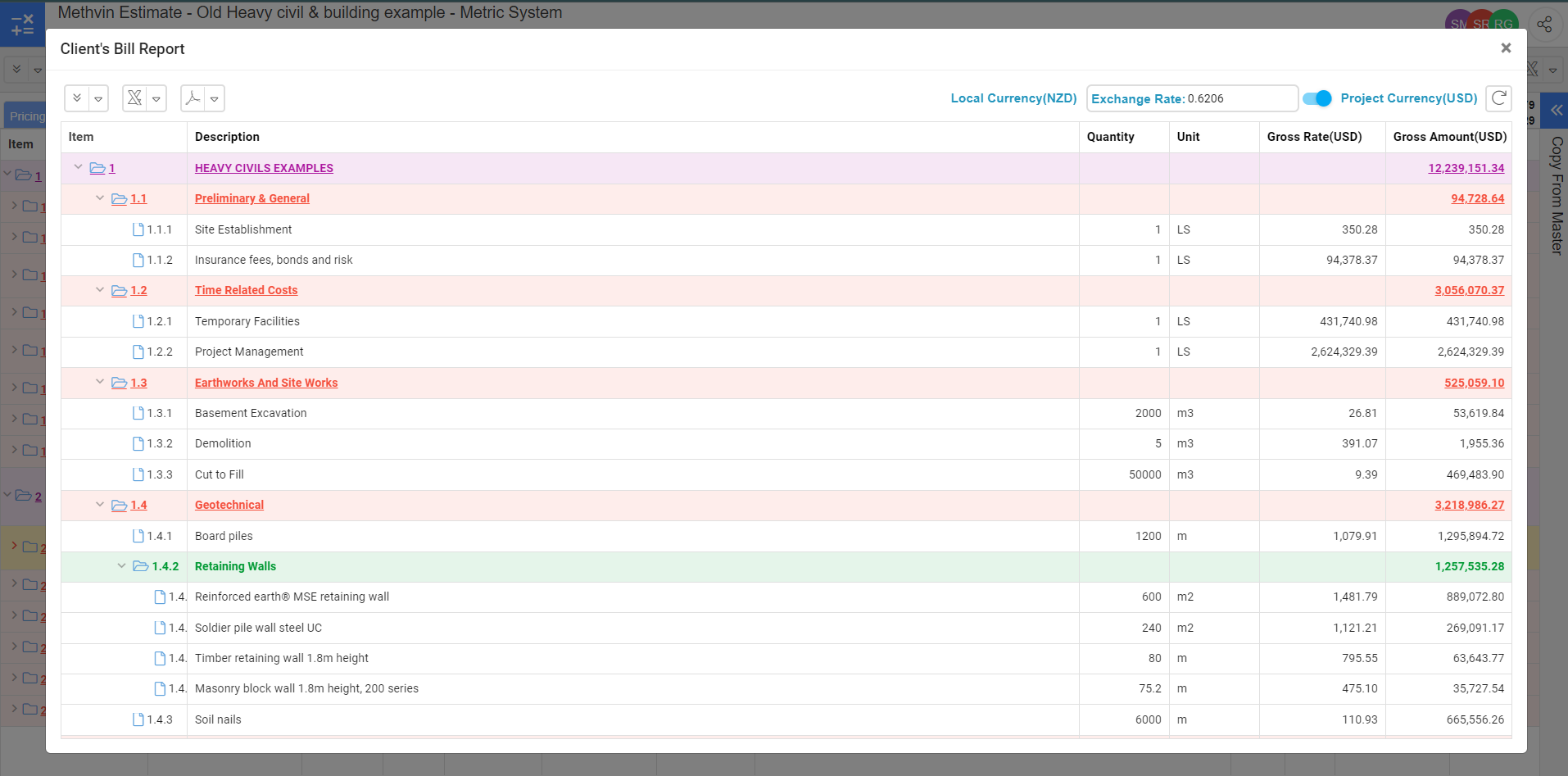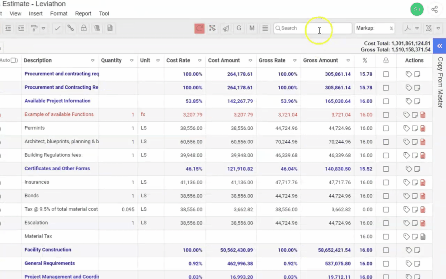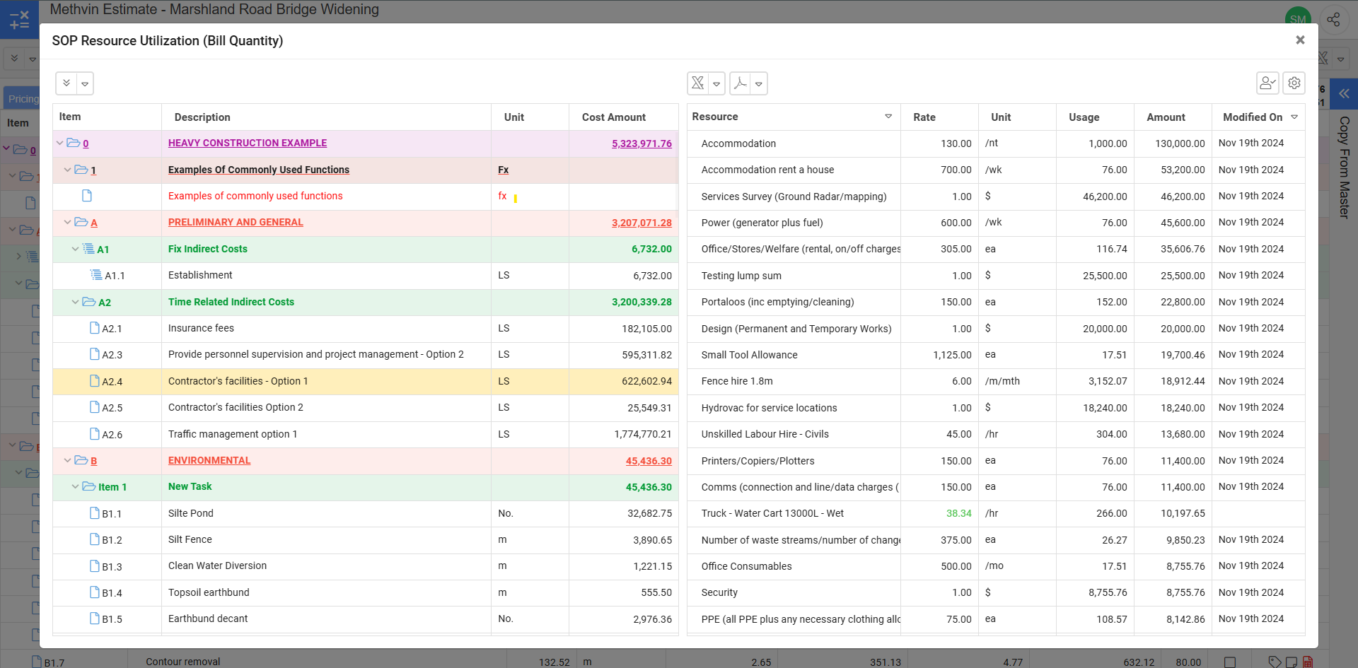 Full Bill Recalculate: Executes a comprehensive recalculation of the entire bill, ensuring all aspects of the project are updated accurately.