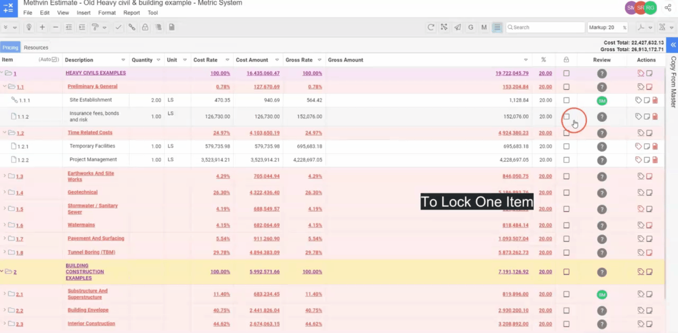 - Lock Item: Locks a selected item to prevent changes without confirmation. Unlock by unchecking the lock column.