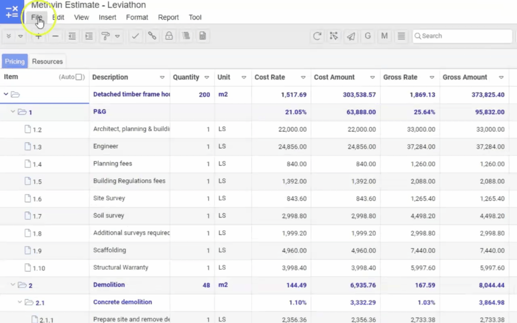 Recalculate Project: Performs a soft recalculation of the project, updating estimates and figures based on the latest data without affecting the entire bill.