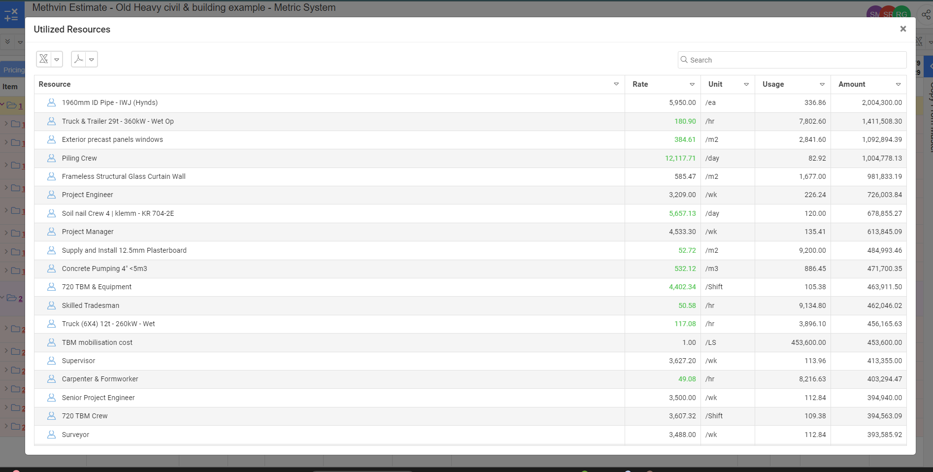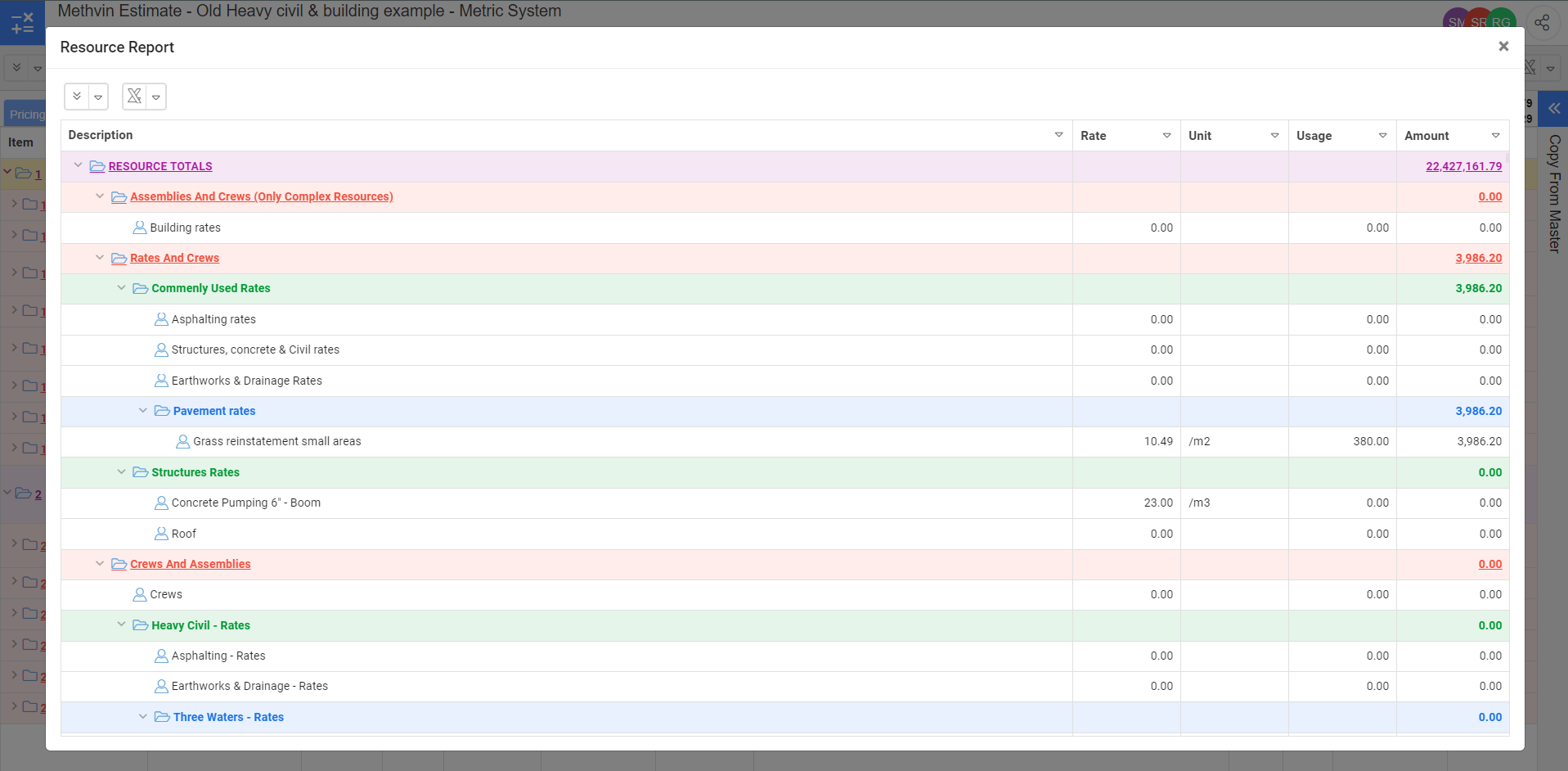 - Upon selecting a specific bill item, generate a detailed report of the resources utilized for that particular bill item. The resources will include columns such as rate, unit, usage, and amount. Users can filter the report by clicking