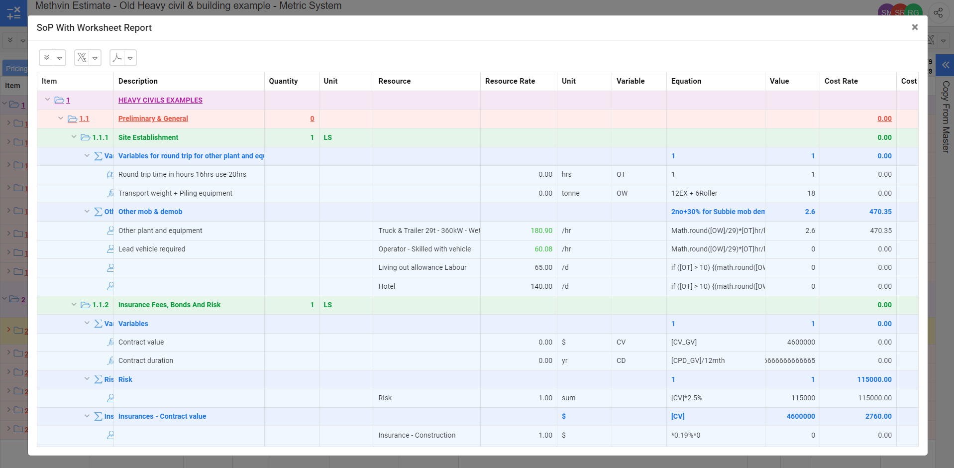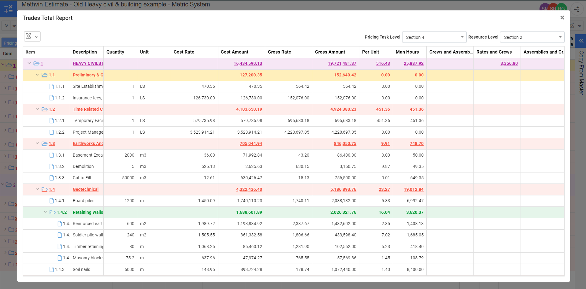 The Report Menu in the estimate app is designed to help you generate detailed reports that cover various aspects of your project. The available reports include: