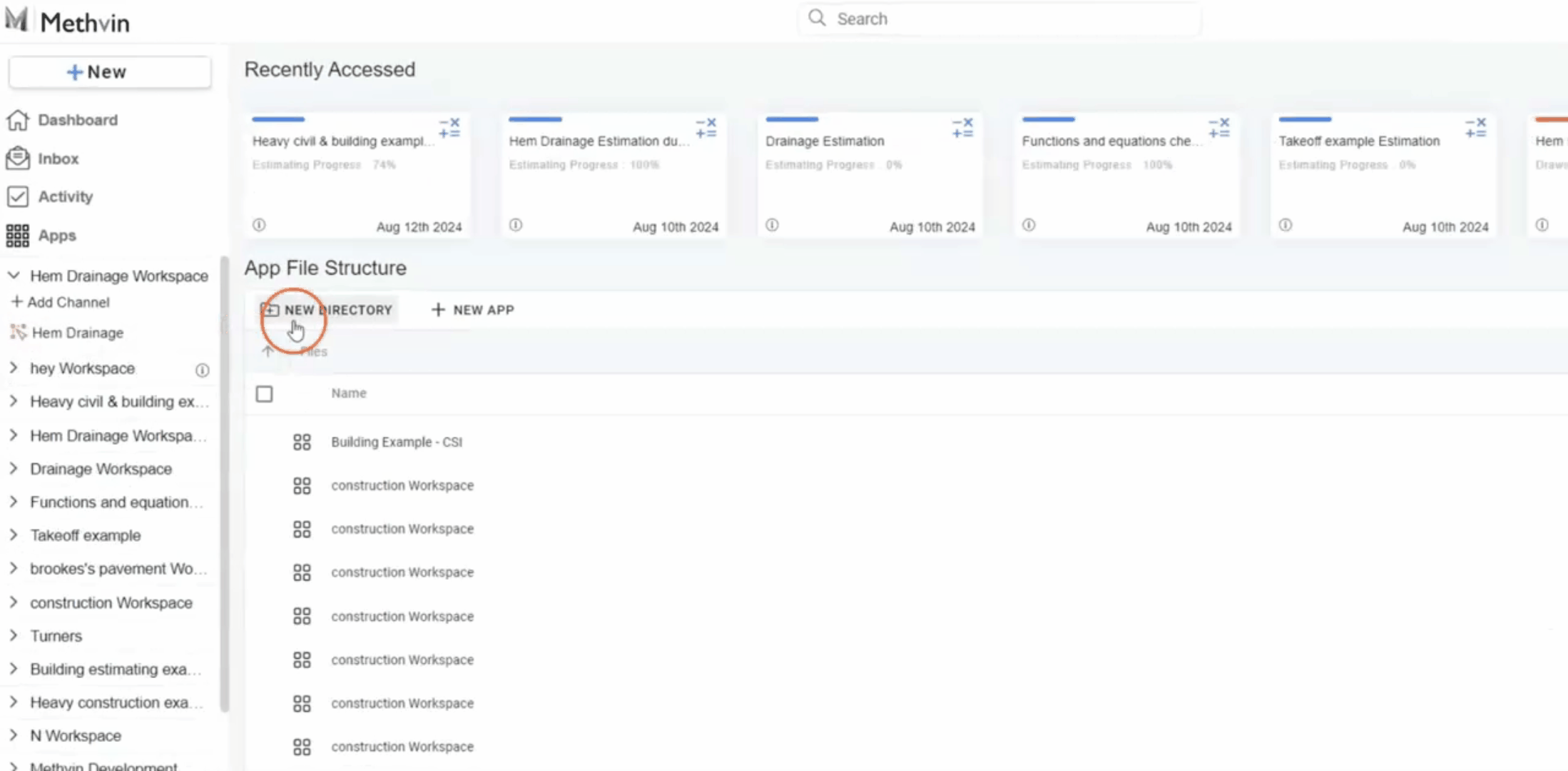 - In the center under the App File Structure, Click NEW DIRECTORY.