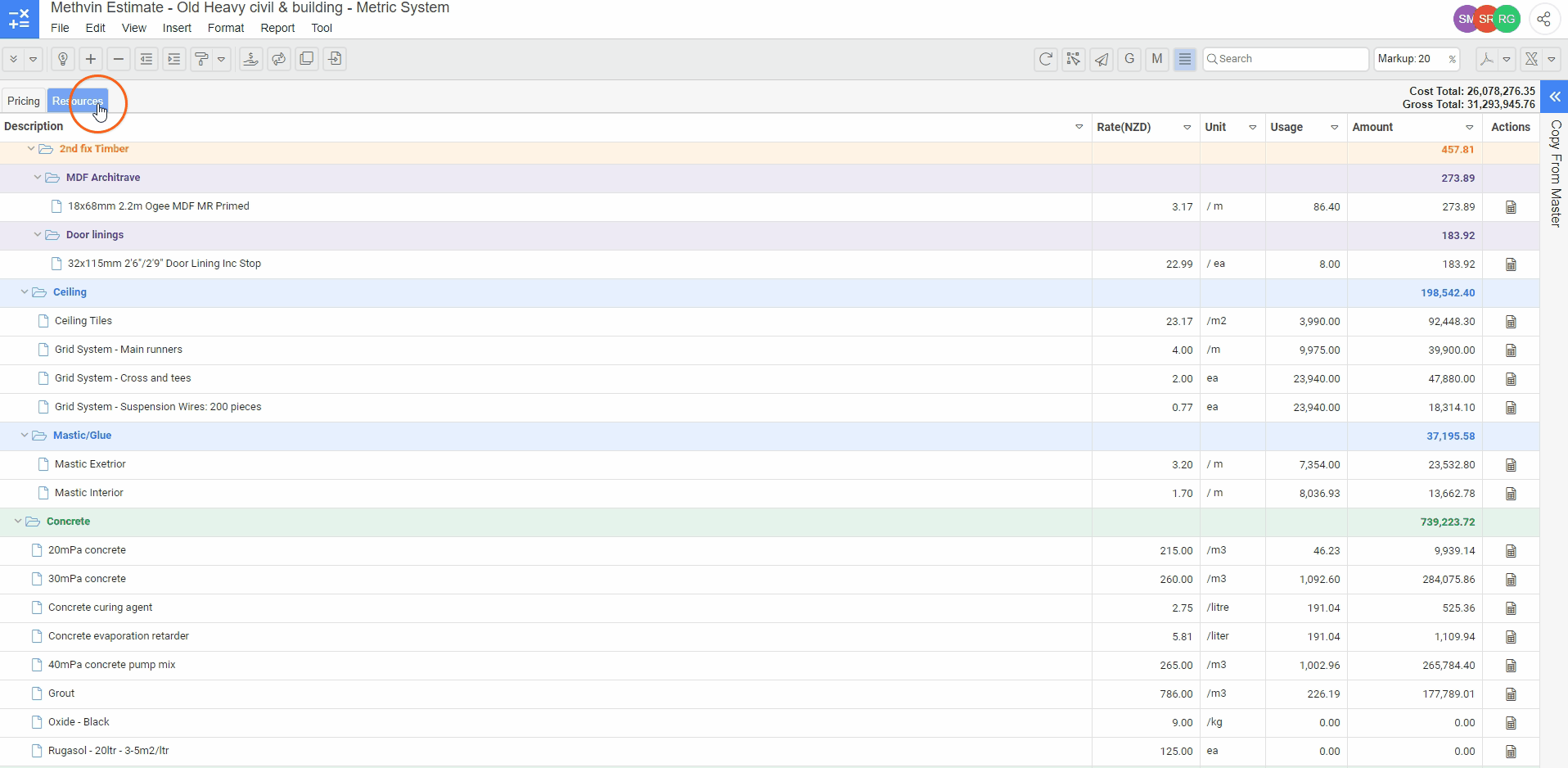 If the resource is frequently used across multiple projects, consider adding it via the Copy from Master feature. This allows you to transfer the resource from a previous project, saving time and ensuring consistency.