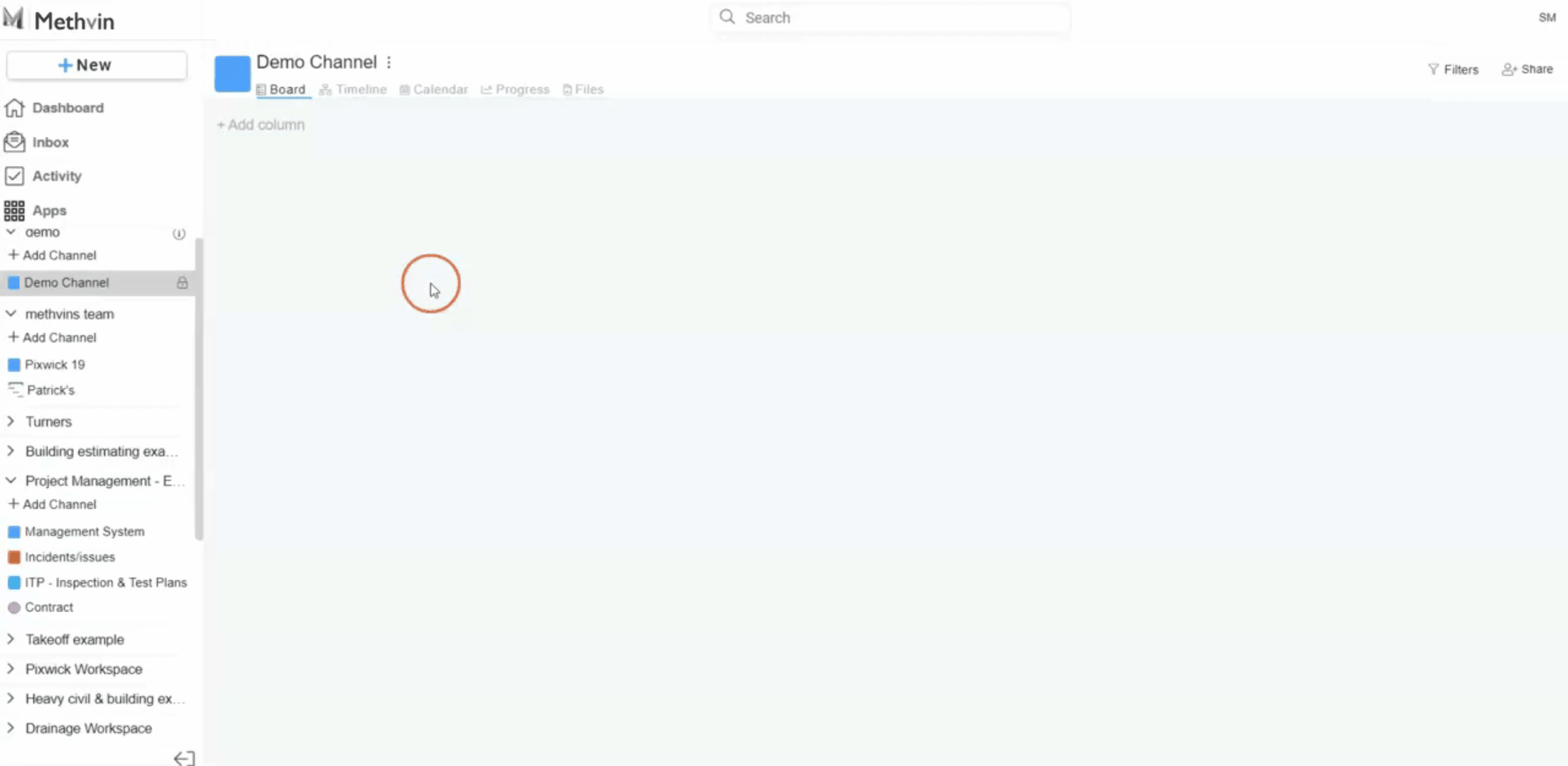 - Under your new workspace, click + Add Channel.