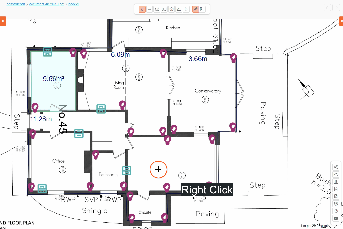 - On the plan, right-click on the specific element of the measurement you want to hide. This will open a context menu.