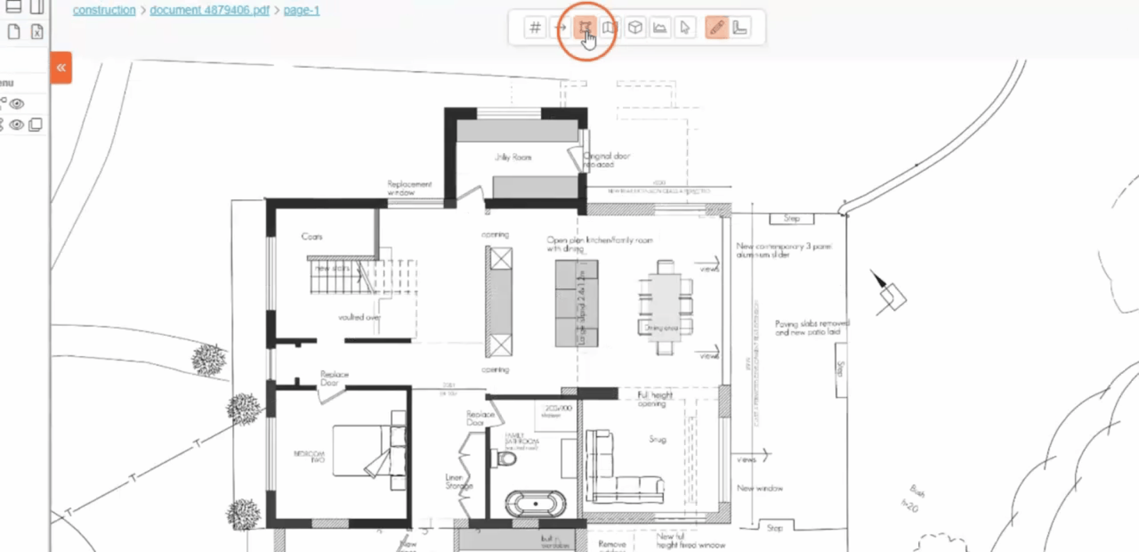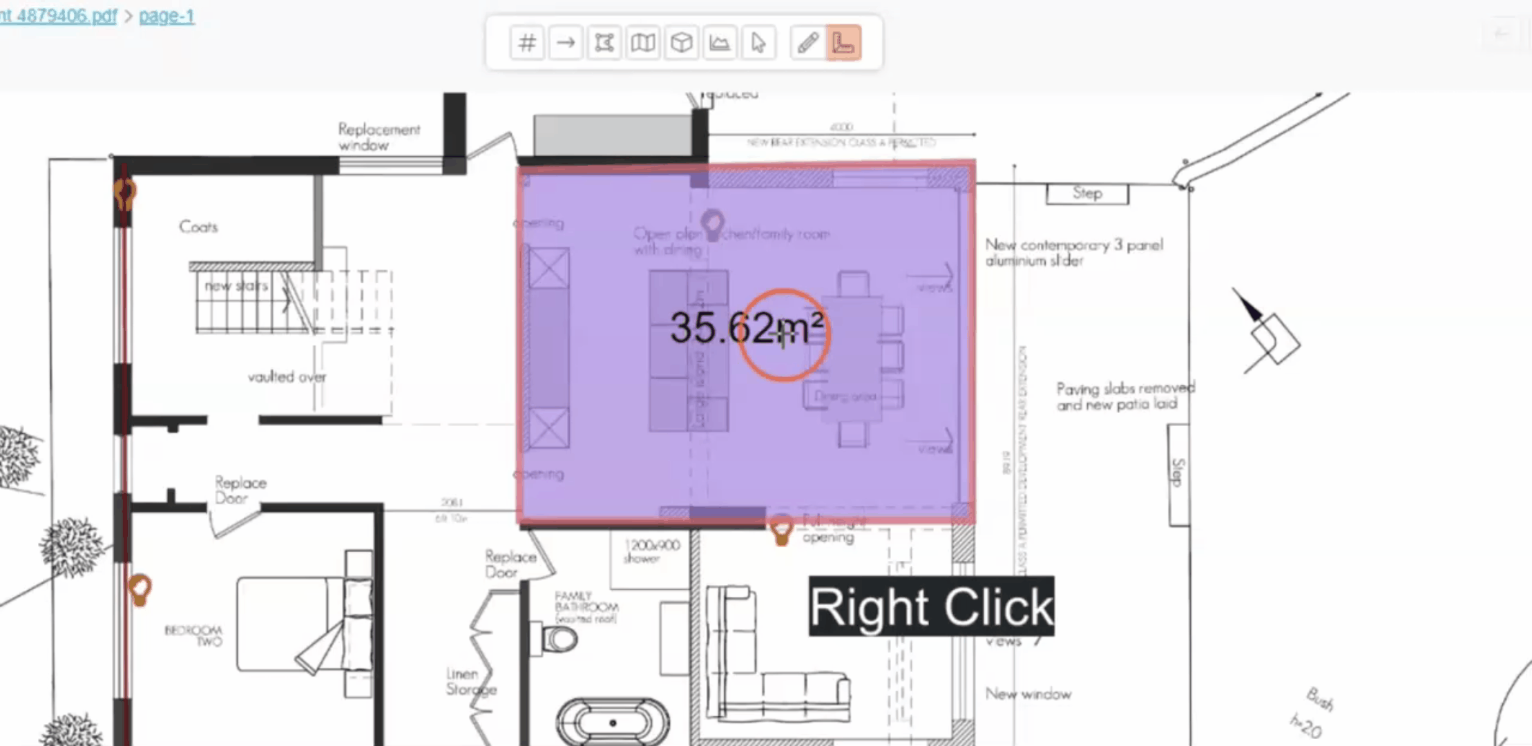 - Click the “Link Drawing +” icon and choose “Area measurement