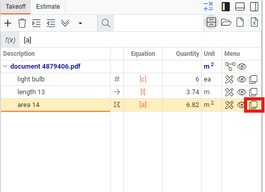 " icon from the menu column in the bill of quantities table. - Click to place a count on the plan.