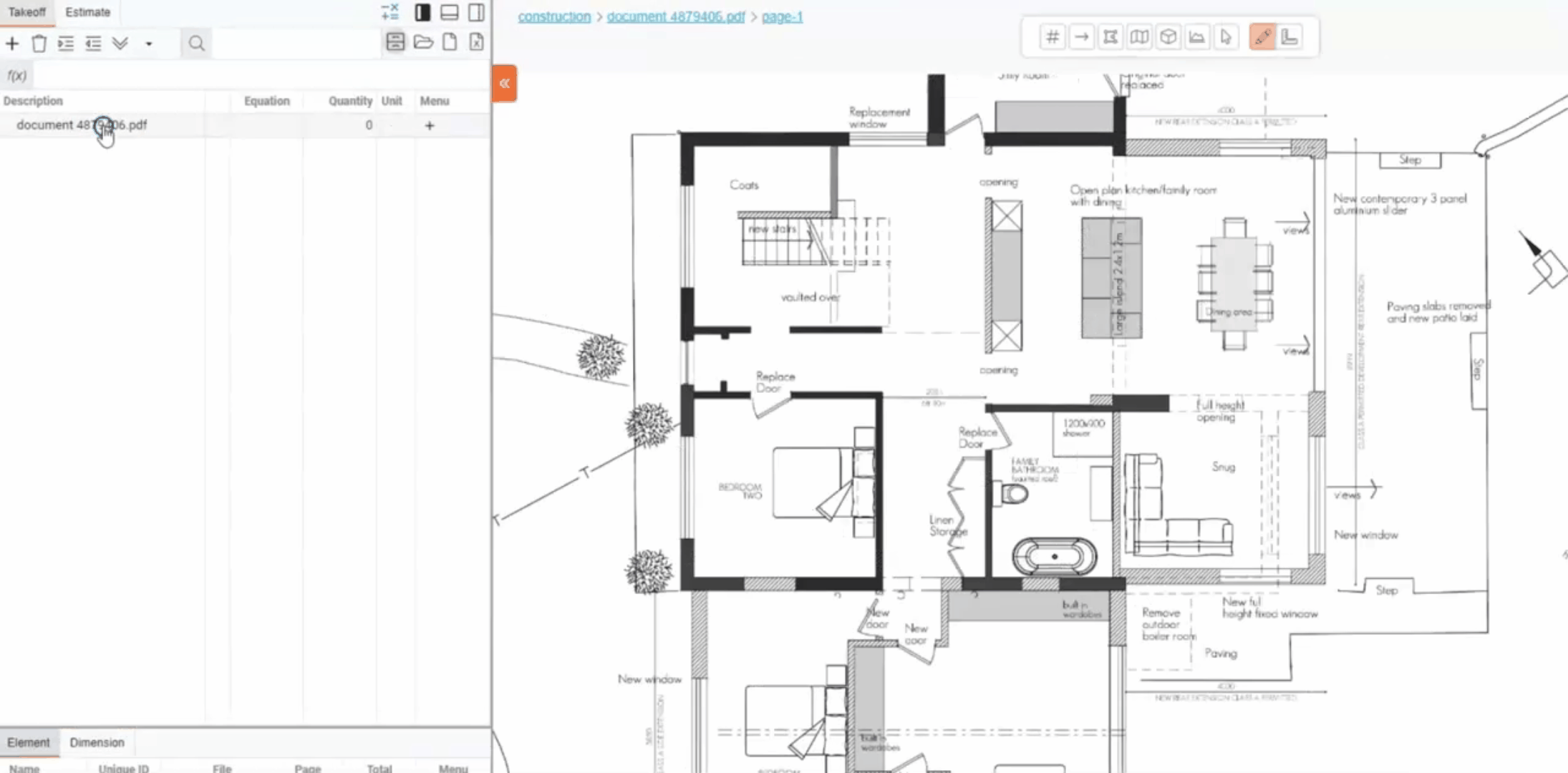 - This action will create a new count item in the bill of quantities table, listed as a child item under the drawing name/description parent.