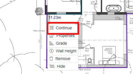 - You can continue with the measure by Right clicking on element to open a context menu with option to “Continue”.