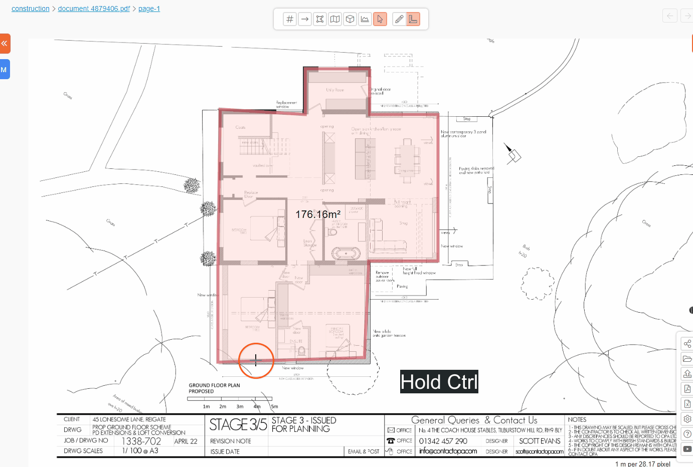 - Hold the CTRL key while hovering over the measurement element to reveal edit points.