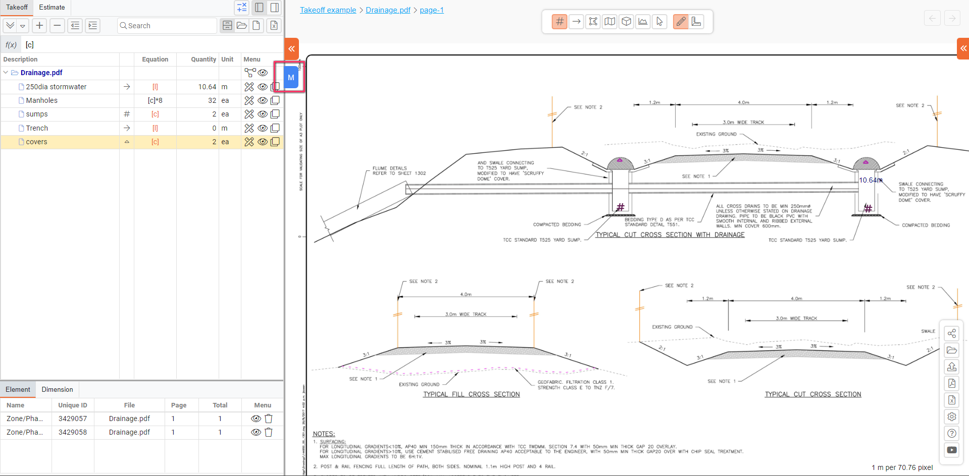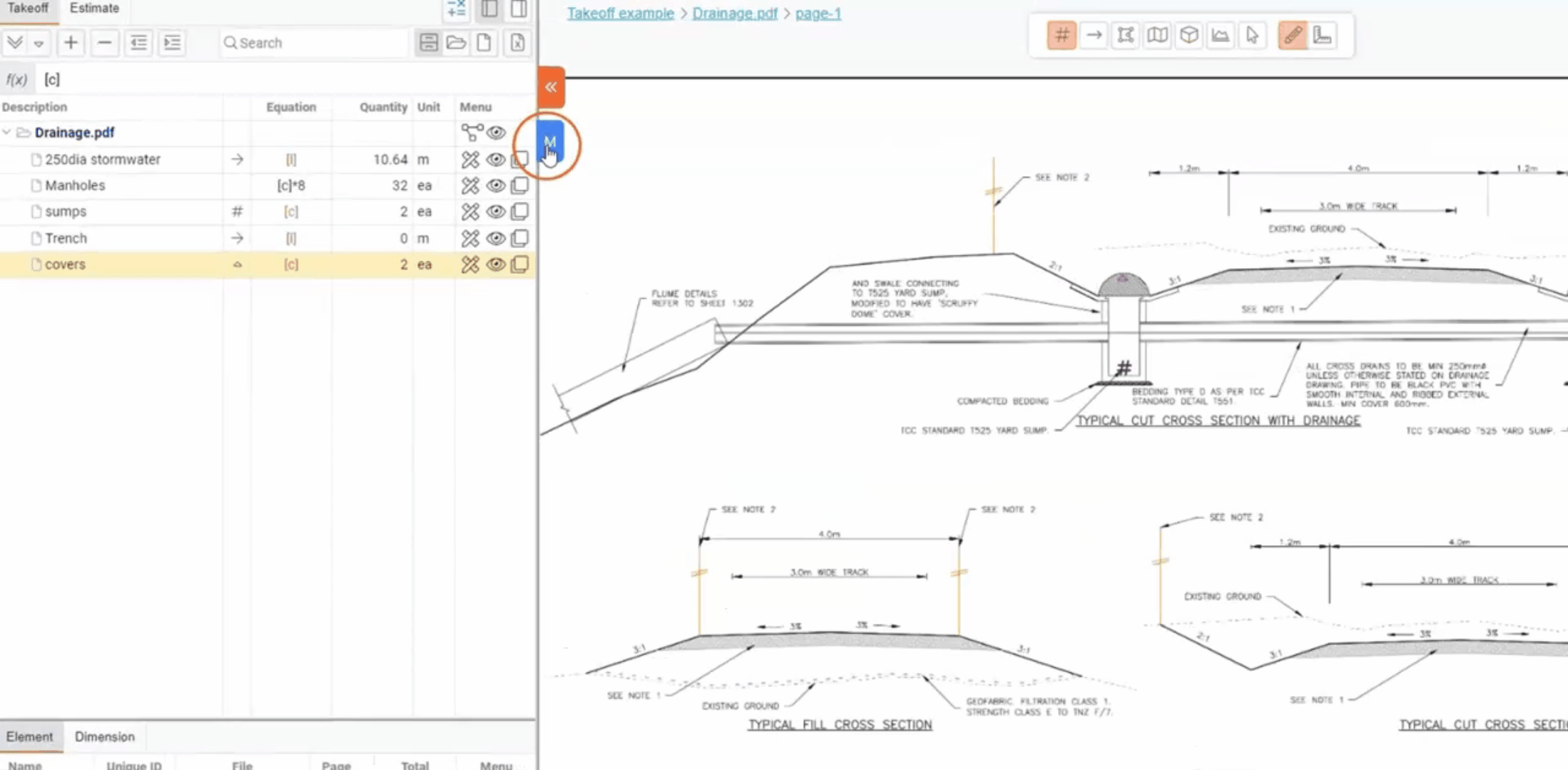 - Once the project is opened, you’ll see the list of available takeoff items.