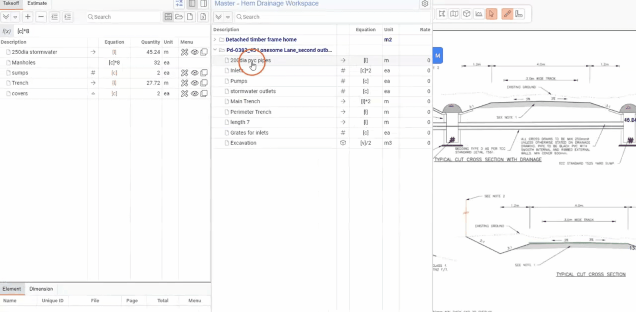 - To import these into your new project, simply drag and drop the desired items into the Bill of Quantities table.